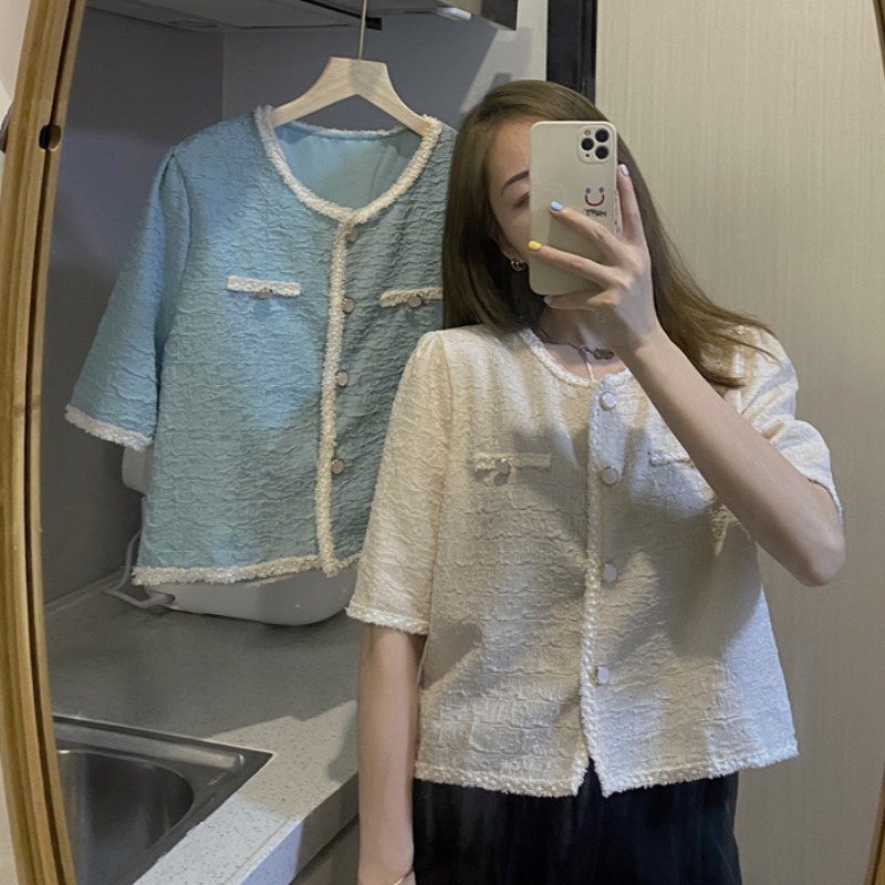 Áo sơ mi croptop tay phồng nữ M12